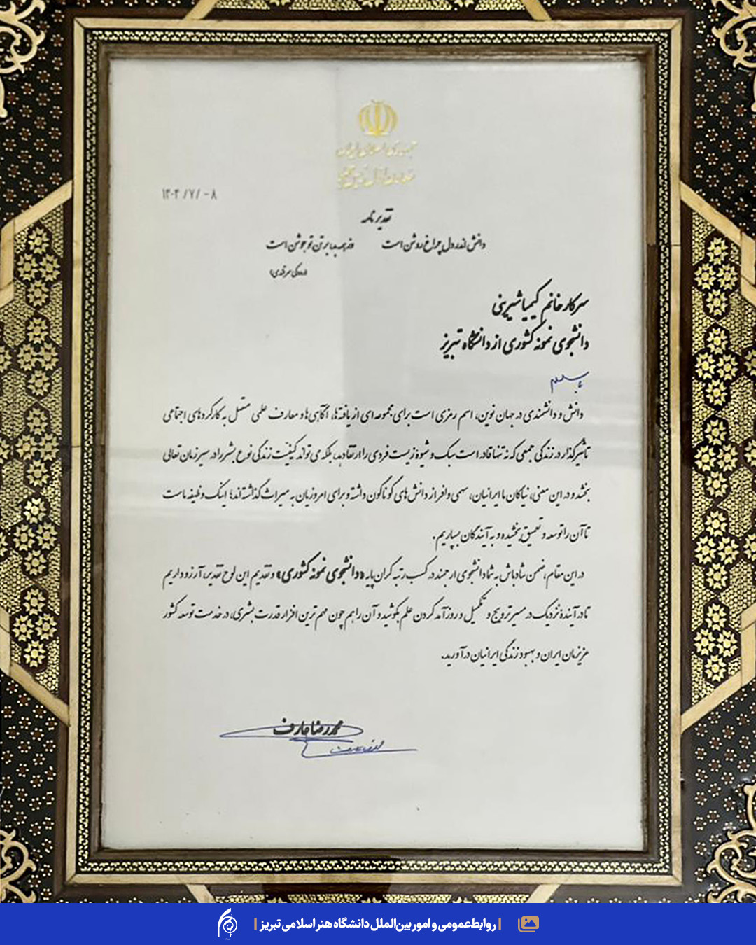 این موفقیت ارزشمند، افتخاری برای دانشگاه هنر اسلامی تبریز محسوب می‌شود و بیانگر جایگاه علمی و پژوهشی برجسته اساتید و دانشجویان این دانشگاه است.