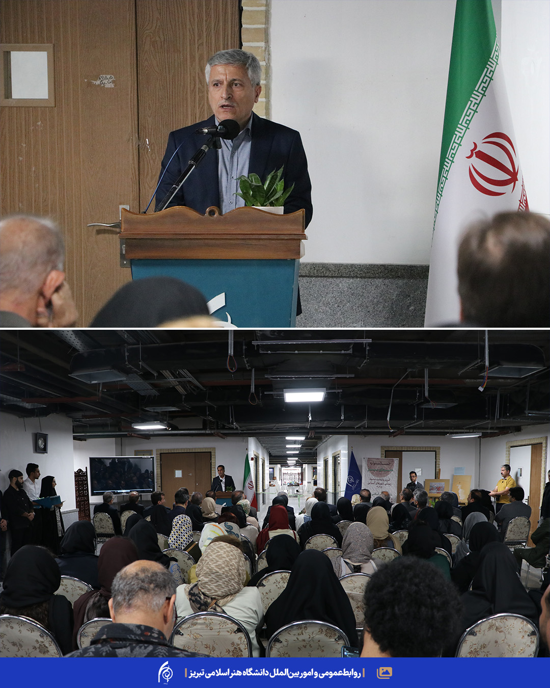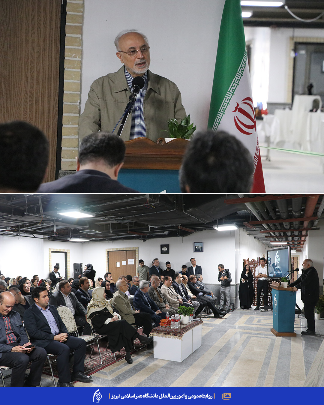 📍در آغاز مراسم، دکتر محمدتقی پیربابایی، رئیس دانشگاه، طی سخنانی بر نقش دانشگاه در پیوند میان هنر، نوآوری‌های سبز و مسئولیت‌پذیری اجتماعی تأکید کرد و این رویداد را گامی مؤثر در ترویج الگوهای پایدار در زیست‌بوم هنر و صنایع خلاق دانست.