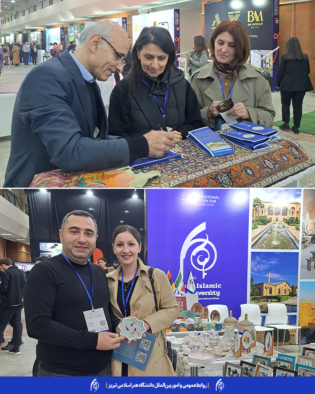 در ادامه، جناب آقای دکتر طاهری، کاردار سفارت جمهوری اسلامی ایران در ارمنستان نیز با حضور در غرفه دانشگاه، ضمن بازدید از آثار ارائه شده توسط اساتید و دانشجویان، بر نقش مهم دانشگاه هنر اسلامی تبریز در معرفی هنر و هویت ایرانی در رویدادهای بینالمللی تأکید نمود.