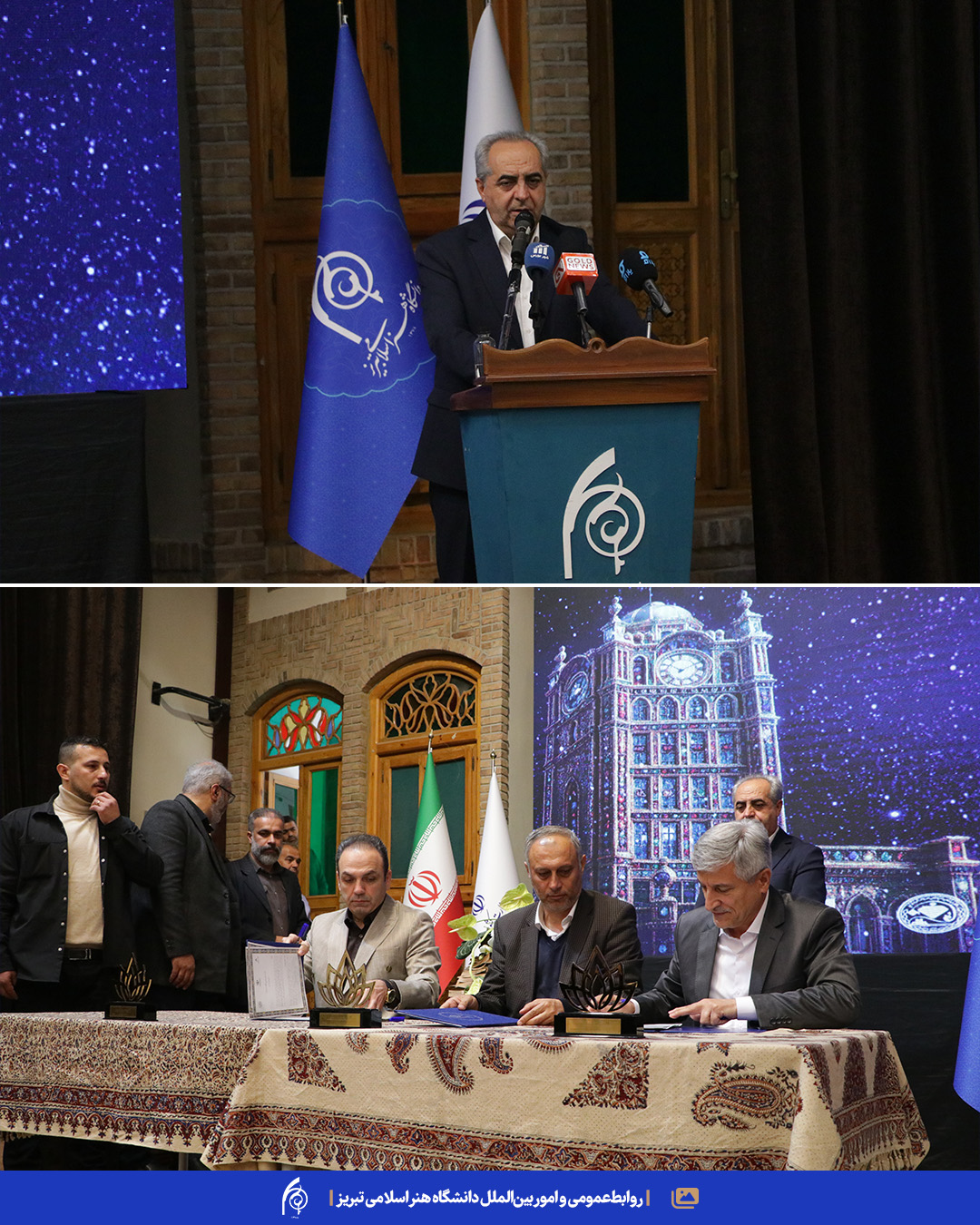 🔷 امضاء تفاهم‌نامه سه‌جانبه میان دانشگاه هنر اسلامی تبریز و اتحادیه طلا و جواهر تبریز با نقش نظارتی و تسهیل‌گری سازمان صمت استان